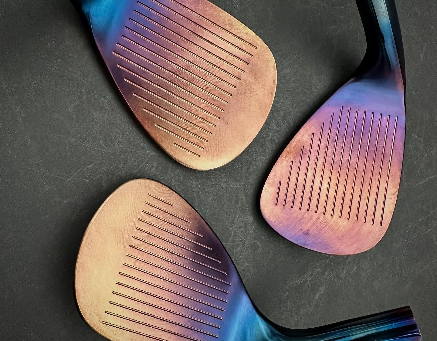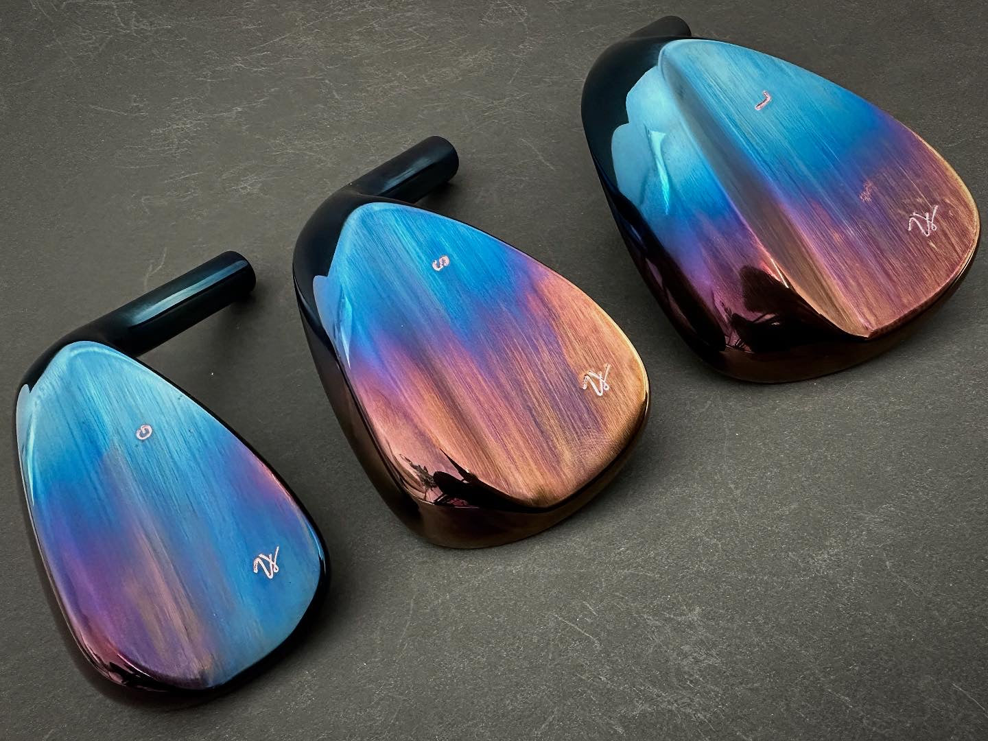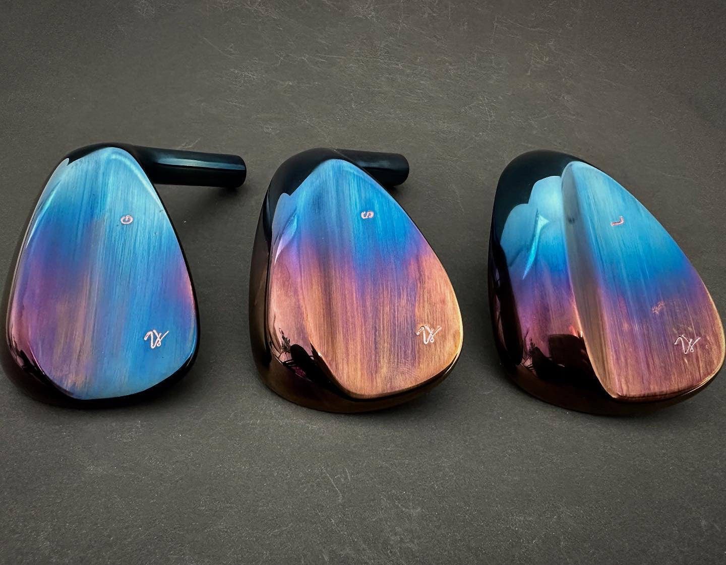 Torched from hosel to toe. This set is stamped with G,S,L (gap, sand, lob) instead of the conventional loft numbers and hungered with a metallic pink paintfill. Your purchase is for this exact set of wedges that you can see in the pictures. ZL wedges are raw 1020c carbon steel and will patina over time. To care for your wedges, keep them clean and oiled when not in use.