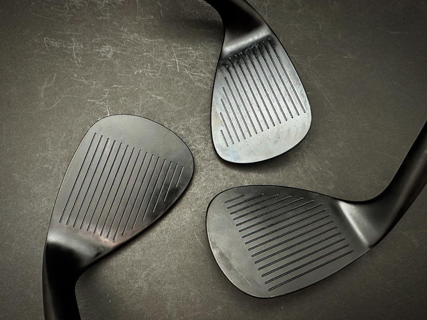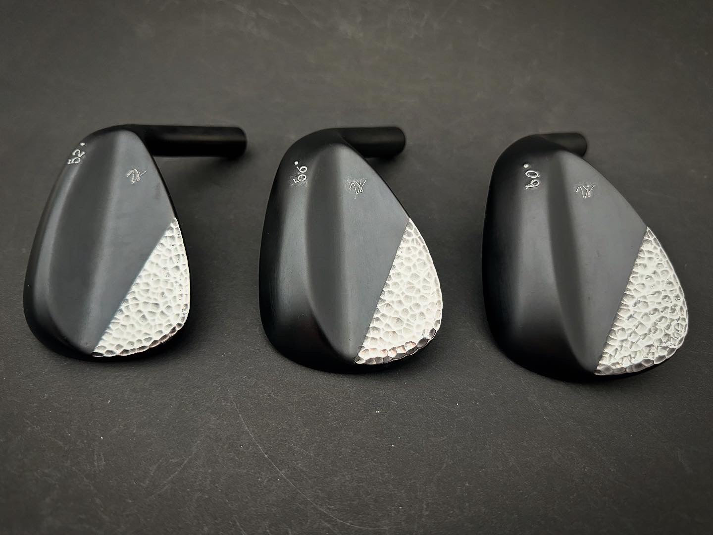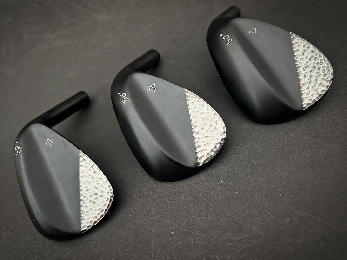 Black oxide finish with a polished hammered toe and metallic silver paint fill. Your purchase is for this exact set of wedges that you can see in the pictures. ZL wedges are raw 1020c carbon steel and will patina over time. To care for your wedges, keep them clean and oiled when not in use.