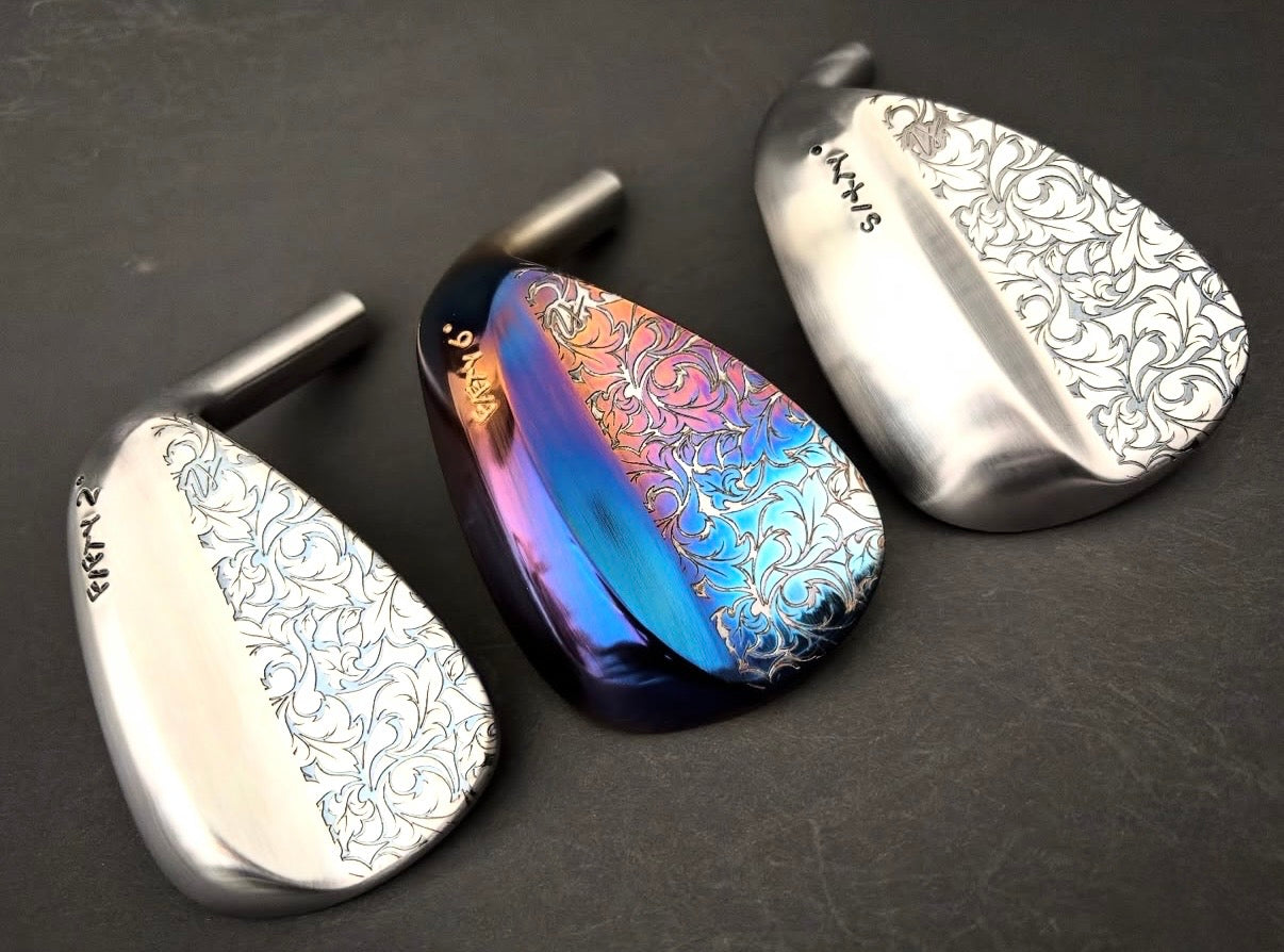 Floral engraved with a torched sand wedge.